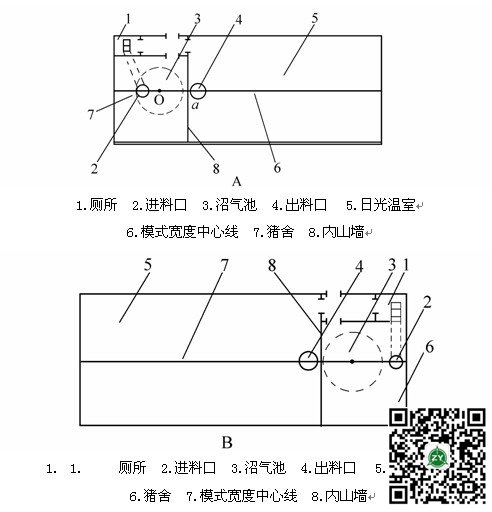 在“模式”内建沼气池均采用地下埋式,沼气池土方工程采用大开挖的施工工艺。首先,应确定好正负零的高度。池坑深度按设计图确定,即沼气池的池顶与出料口保持在一个水平面上,并高出猪舍地面