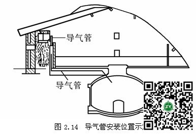 当砌筑池拱盖要封口时,在拱顶正中央安放直径为9~10毫米的导气管,插入深度以池内密封层完工后露出