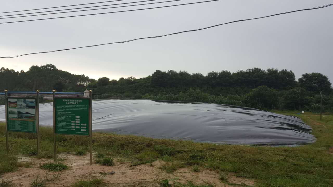 惠州泰美10000立方米黑膜沼气池成功产气。目前已经安装300KW沼气发电机组发电。